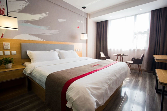 酒店客房沿袭了尚客优的现代时尚装修风格与“美美睡”品质,让人在舒适睡眠中醒来,移步可置身古村落的古典淡雅环境中,仿若有穿越之感。